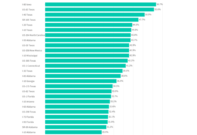 The author or the report David Ascienzo used various factors to determine roads’ riskiness, including “fatal crashes per vehicle: Miles-traveled per capita highlighted highway stretches which have a disproportionate number of fatal crashes compared to the number of people who drive on it.”